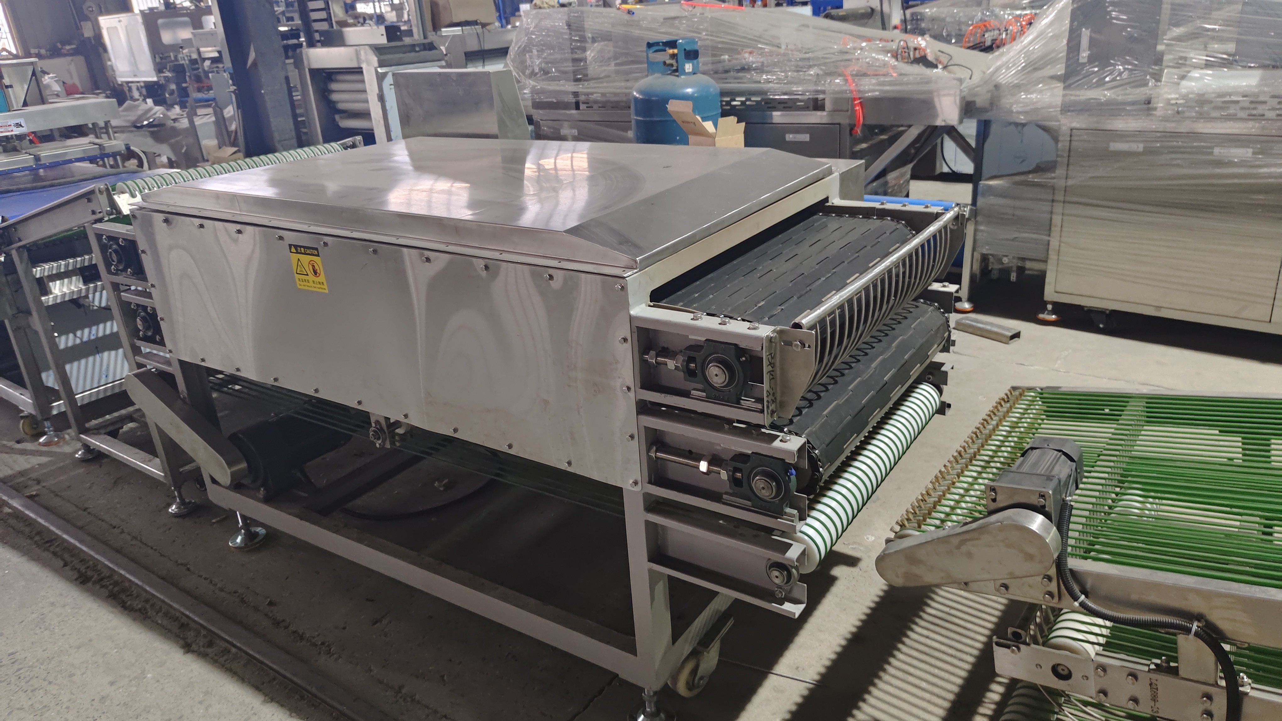 プローファー->パスタミキサー->コンベヤー ->プレスマシン ->ガスオーブン ->冷却コンベヤー ->カウンタースタッカー